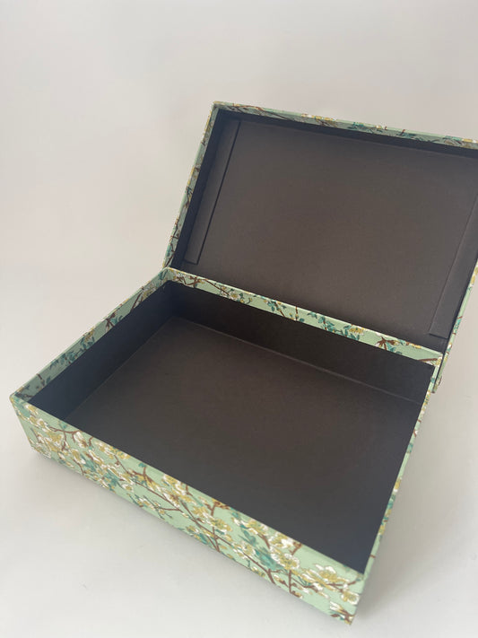 友禅和紙 お道具箱 (浅型) 桃の木 ペパーミントグリーン