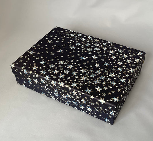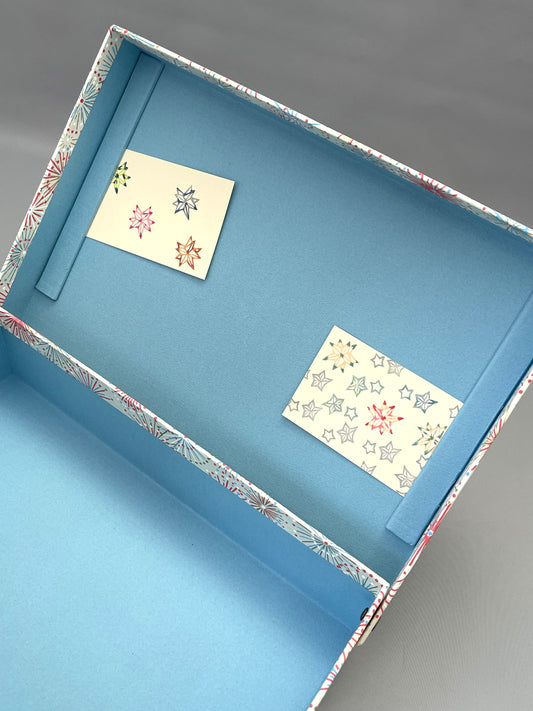 友禅和紙 お道具箱 (浅型)ORIGAMI STAR ダークネイビー 白糸目
