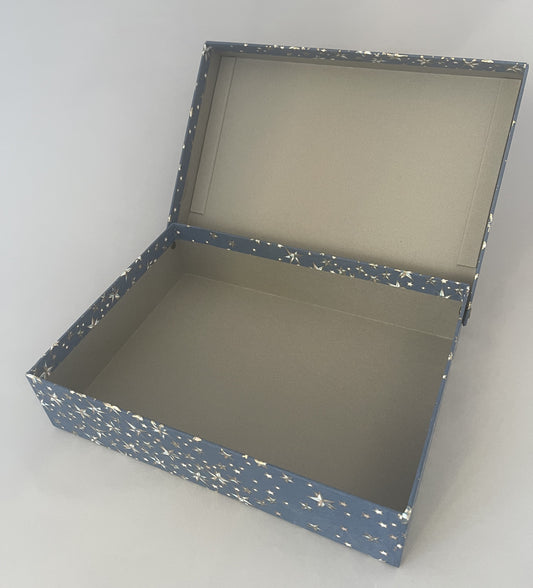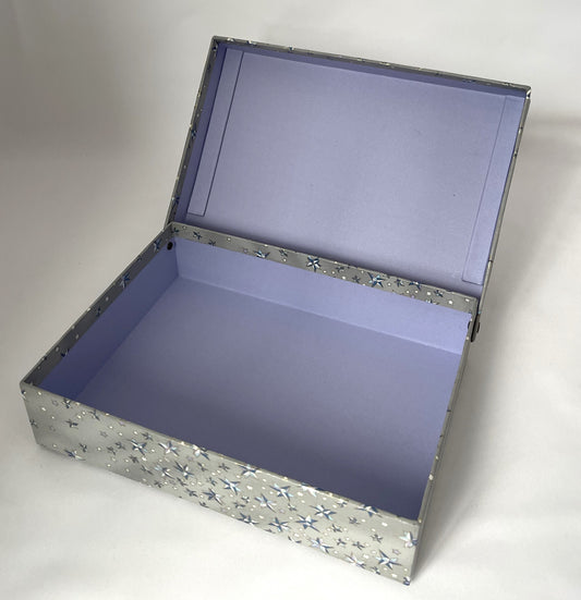 友禅和紙 お道具箱 (浅型)ORIGAMI STAR スモークブルー 金糸目