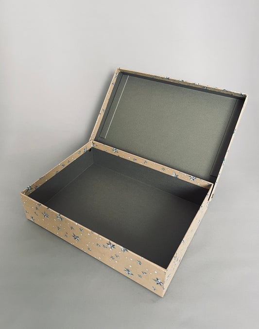 友禅和紙 お道具箱 (浅型)ORIGAMI STAR ダークネイビー 金糸目