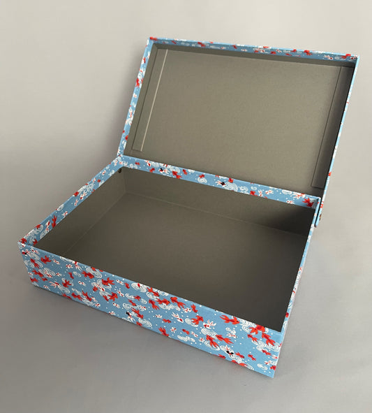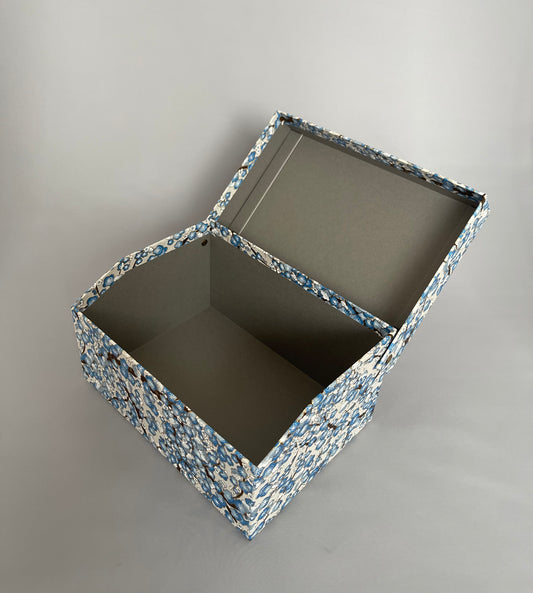 友禅和紙 お道具箱(深ボックス型) 梅の木 パールホワイト/ブルー