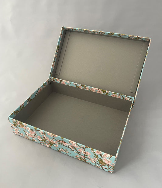友禅和紙 お道具箱 (浅型) 桃の木 水色