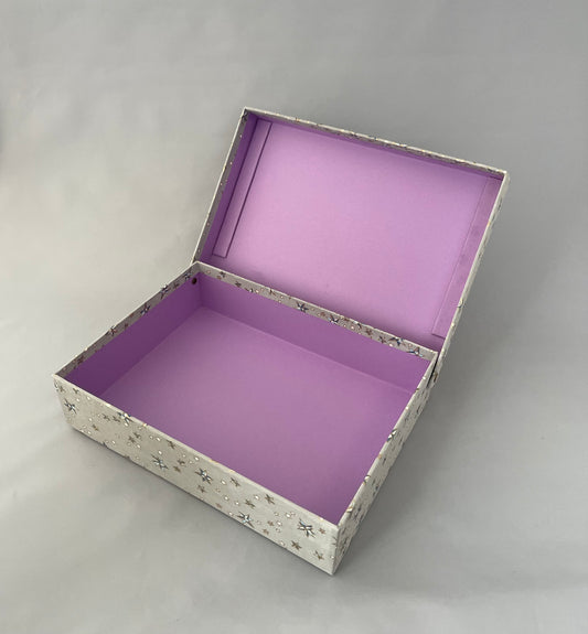 友禅和紙 お道具箱 (浅型)ORIGAMI STAR ライトグレー ラメ入り