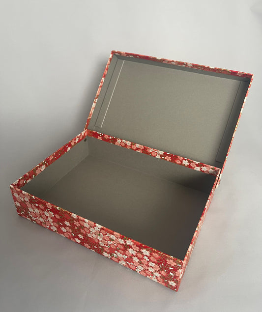 友禅和紙 お道具箱(深ボックス型) 梅の木 オフホワイト/ピンク