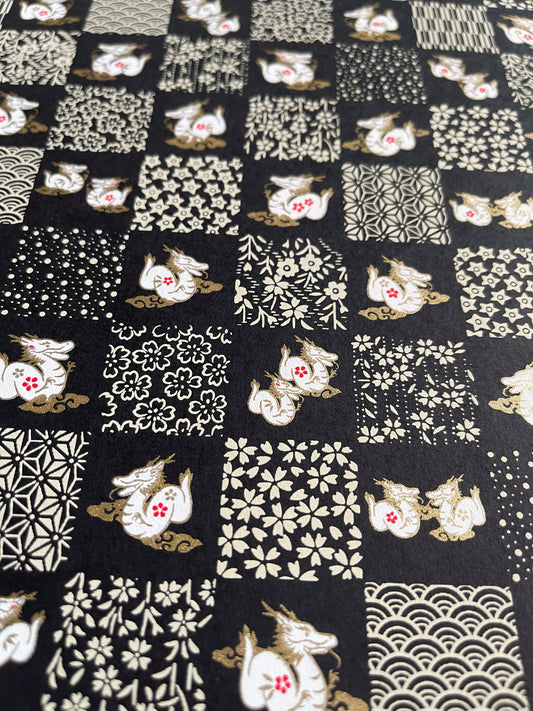 友禅和紙 お道具箱 (浅型)ドラゴン ブラック