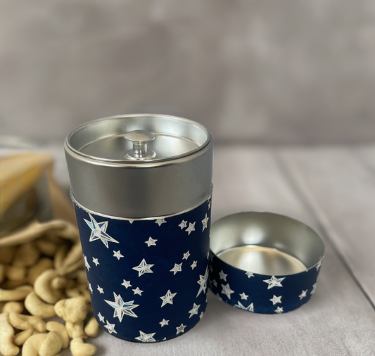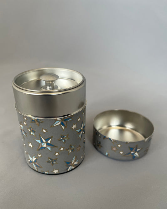 友禅和紙お茶缶 M (茶葉100g用) ORIGAMI STAR ダークネイビー/金糸目