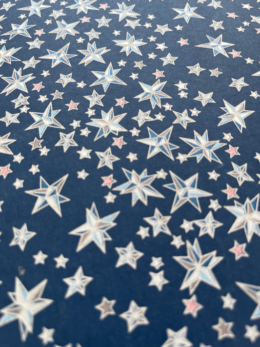 友禅和紙お茶缶 M (茶葉100g用) ORIGAMI STAR ネイビー ピンク星入り/白糸目