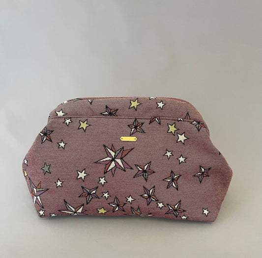 尾州 ジャカード織 口金 ワイドオープンポーチ (ORIGAMI STAR)