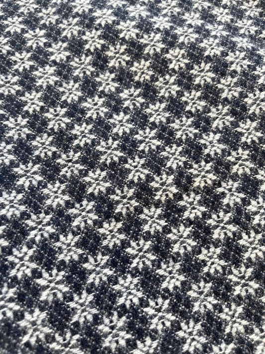 ウール/シルク 尾州ジャカード織 大判ショール (ダークネイビー)