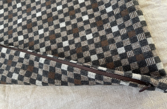 尾州 ドビー織り 長方形クッションカバー(市松 ブラウン)30cm×50cm
