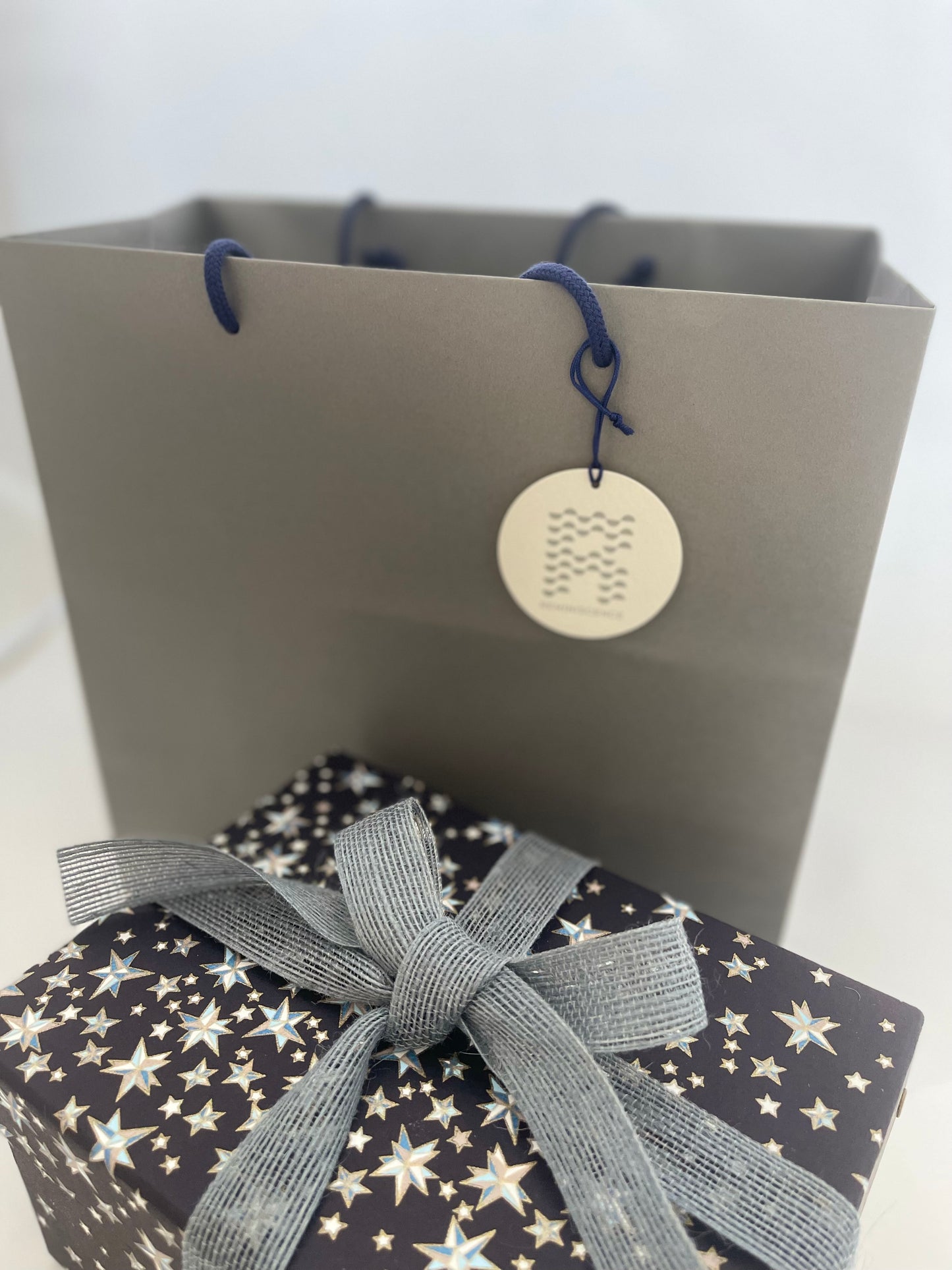 グレーのタント紙を使用した、シックなデザインの紙袋です。