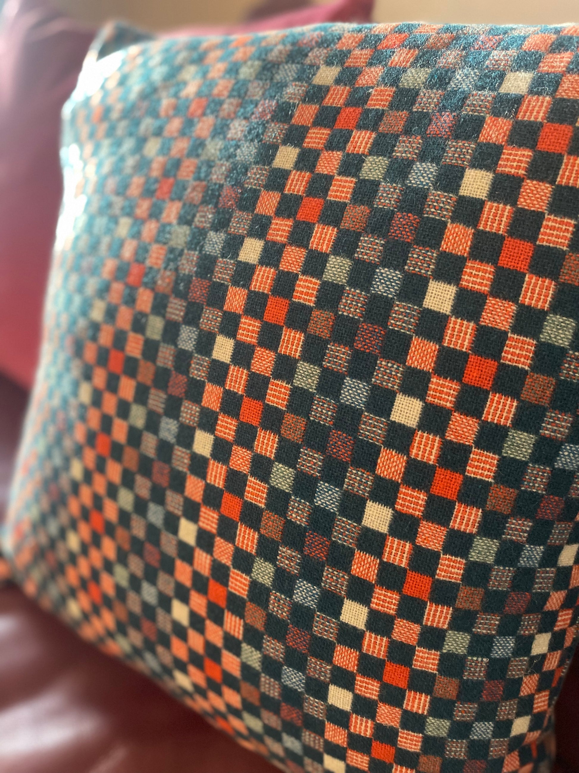 尾州 ドビー織り 正方形クッションカバー(市松 ネイビー)50cm×50cm
